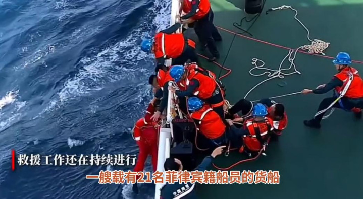 1月22号晚上,一艘从菲律宾开往中国广东的货船,在黄岩岛附近翻了,船上21个菲律宾船员全部落水,情况特别危急。